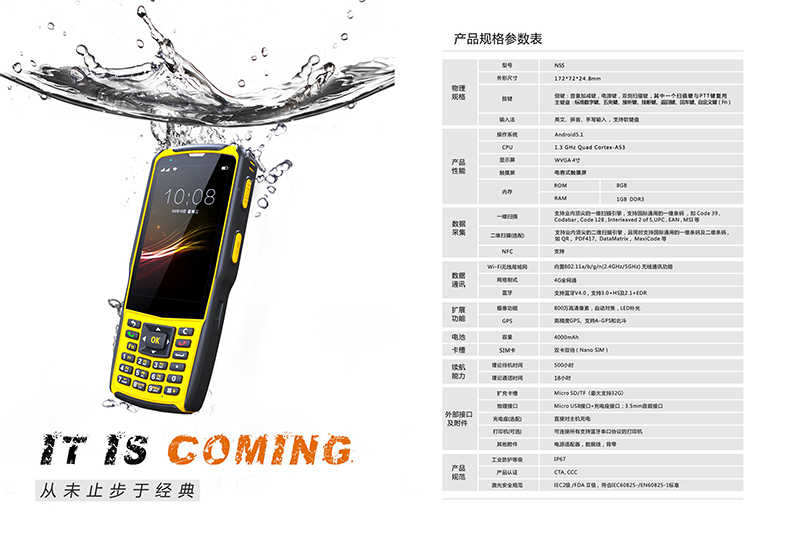 N5S是智聯天地新推出的一款基于4G網絡和安卓系統的行業終端;采用六面多維度包膠設計,融合美學與三防;4.0寸主流高清顯示屏,同時具備了多顆專業的1D/2D掃描引擎。
